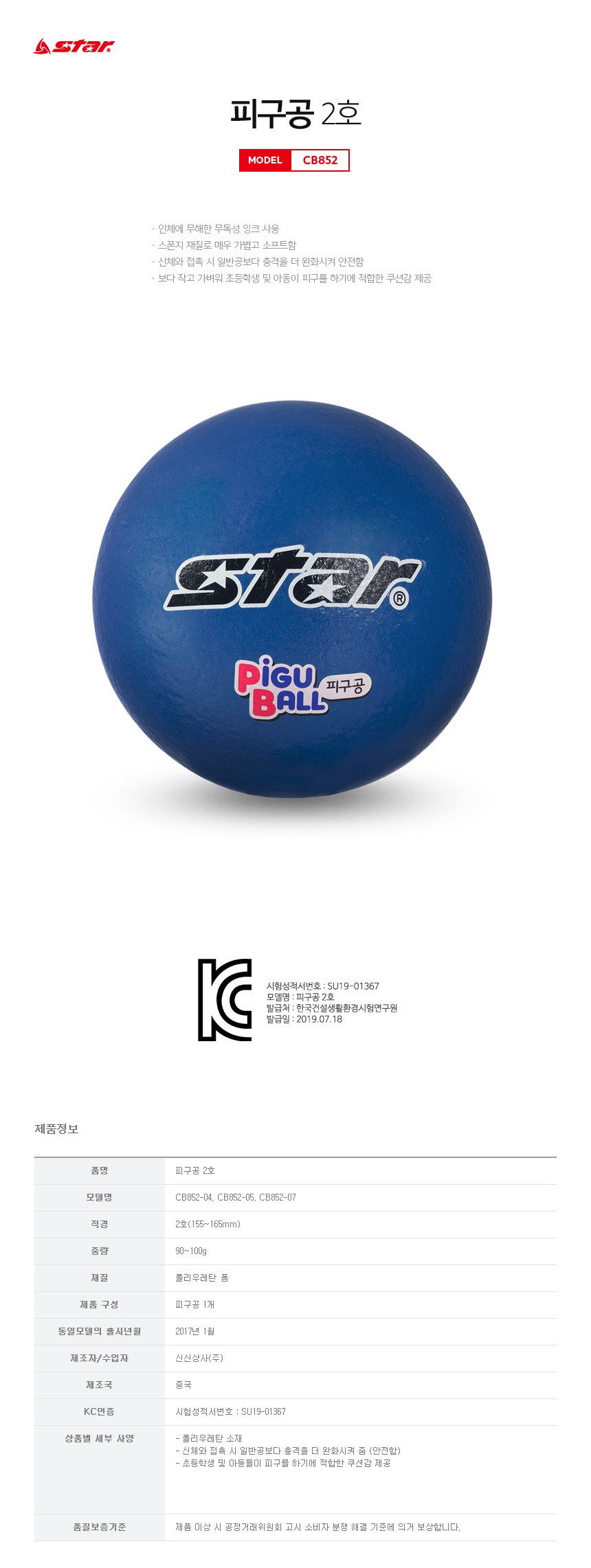 스타 피구공 2호 파랑 스포츠 운동 레저 활동 경기
