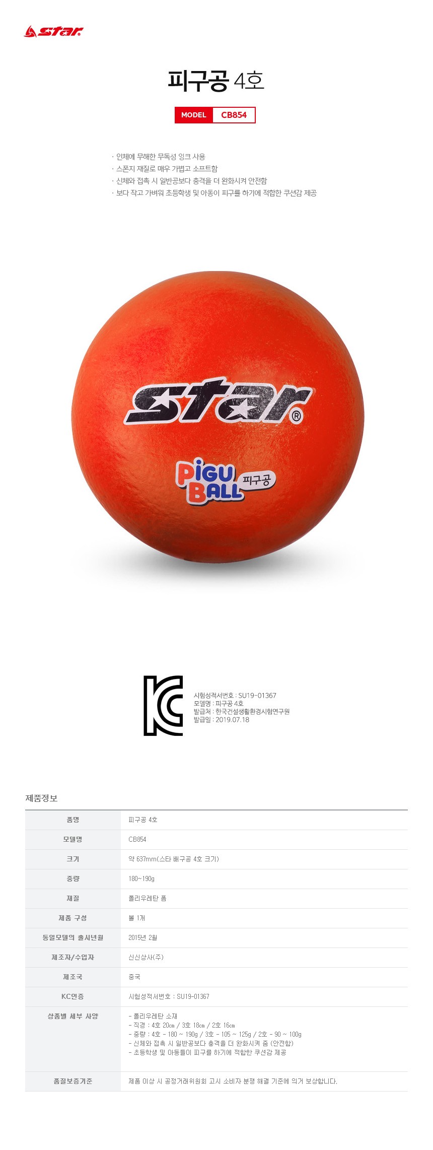 스타 피구공 4호 주황 스포츠 운동 레저 활동 경기