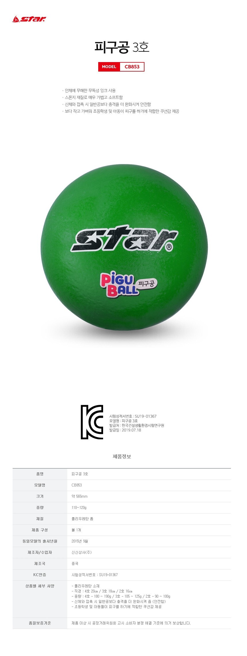 스타 피구공 3호 초록 스포츠 운동 레저 활동 경기