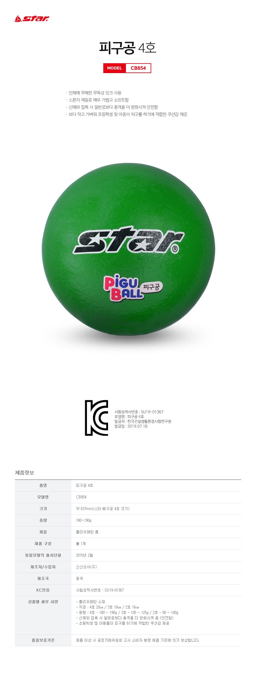 스타 피구공 4호 초록 스포츠 운동 레저 활동 경기