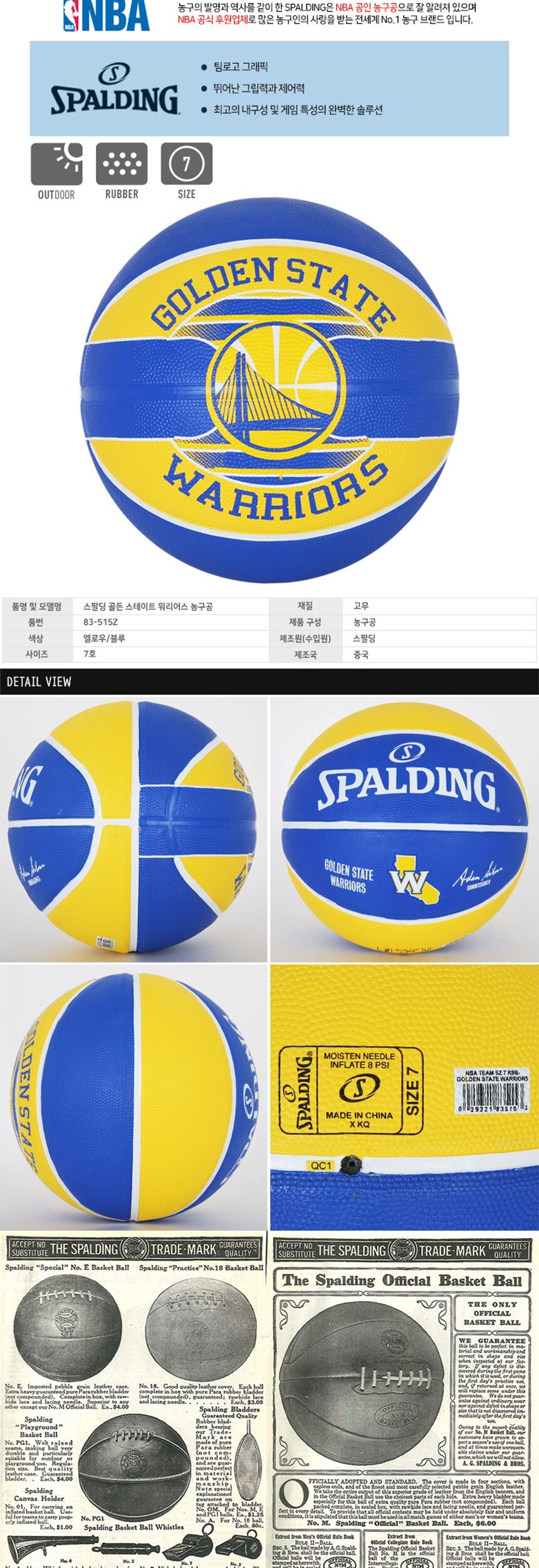 스팔딩 골든 스테이트 워리어스 농구공 7호 농구 농구용품 스포츠 운동 구기
