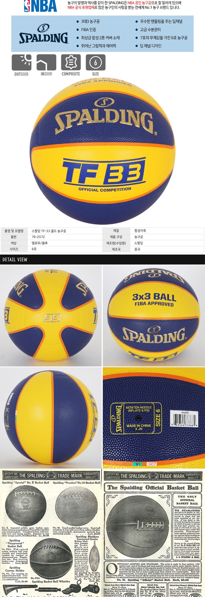 스팔딩 TF-33 골드 농구공 6호 농구 농구용품 스포츠 운동 구기 이미지/