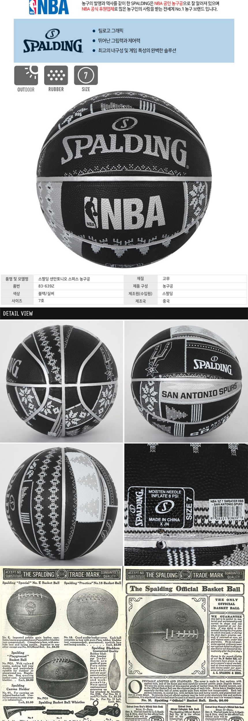스팔딩 샌안토니오 스퍼스 농구공 7호 블랙 실버 농구 농구용품 스포츠 운동 구기