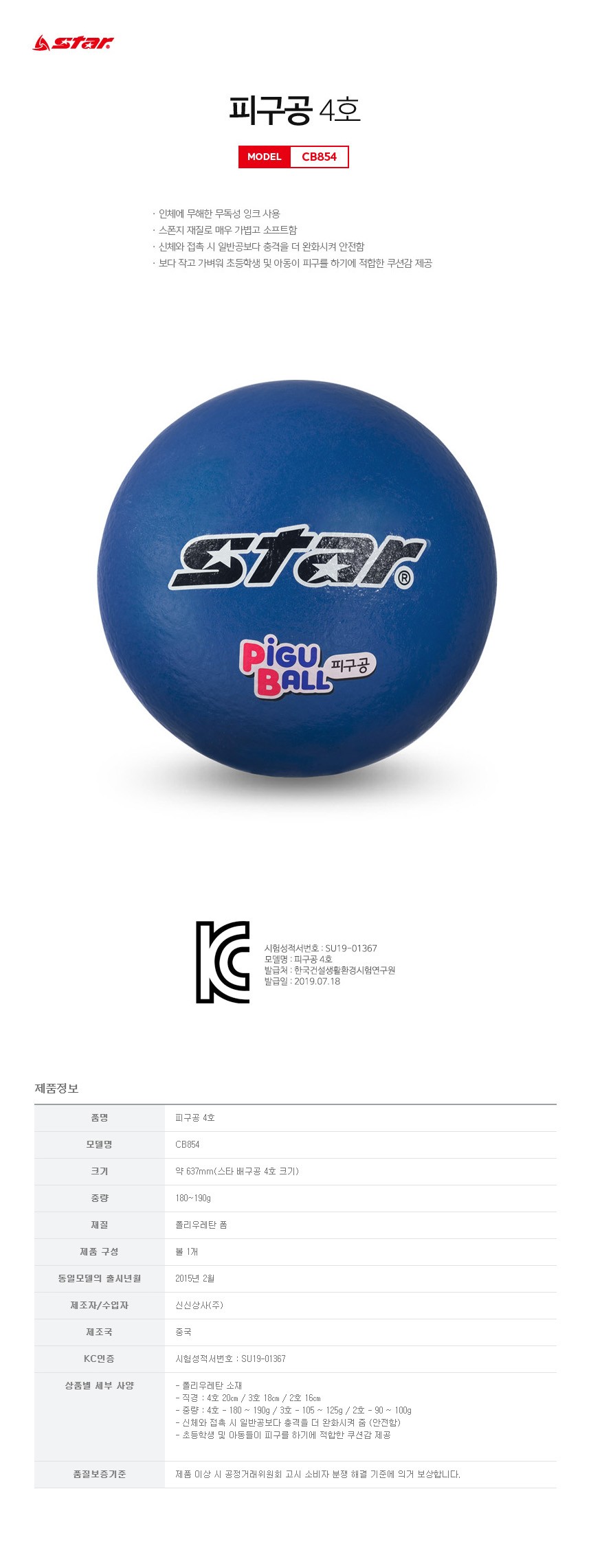 스타 피구공 4호 파랑 스포츠 운동 레저 활동 경기