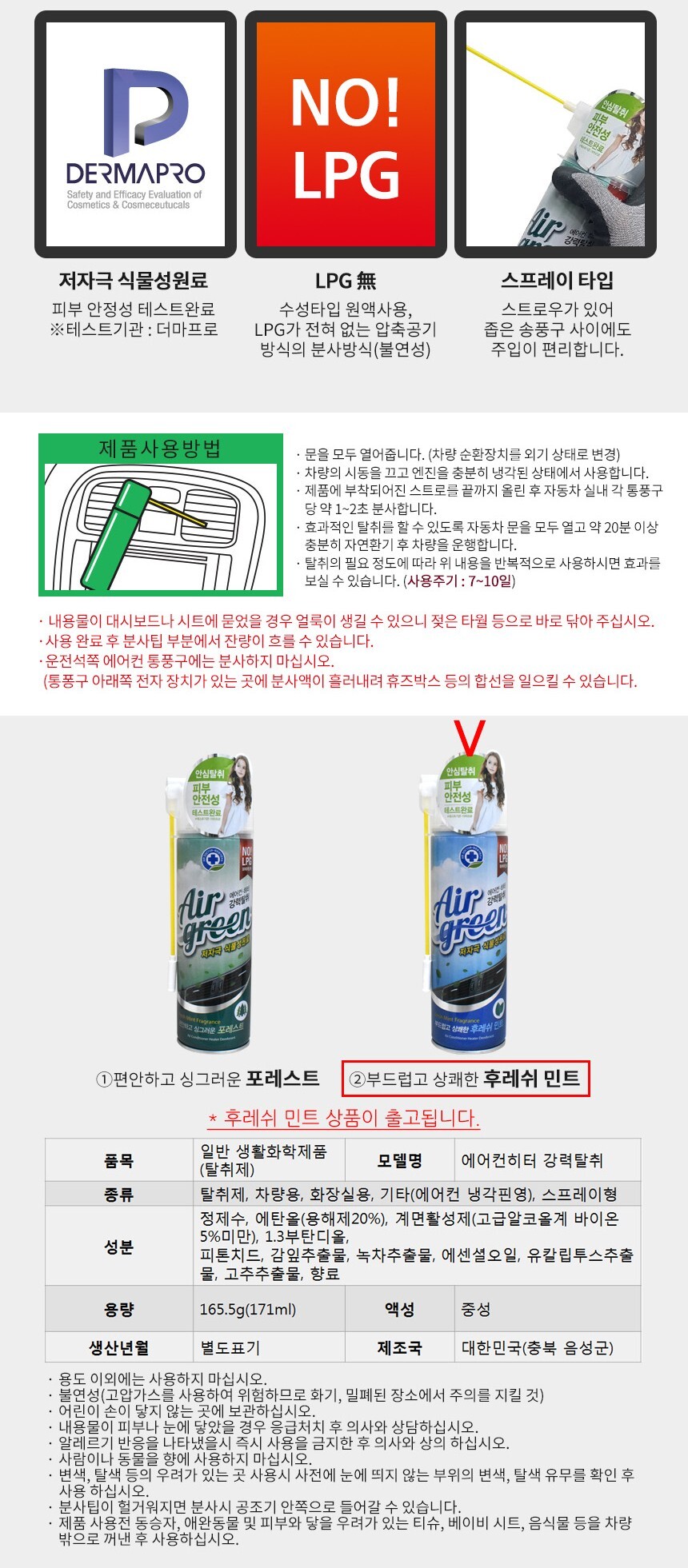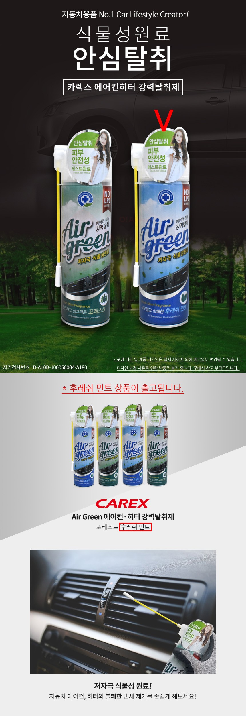 카렉스 에어그린 에어컨히터 탈취제 후레쉬민트 차량탈취제 강력탈취제 차량용탈취제 냄새제거 차 이미지/