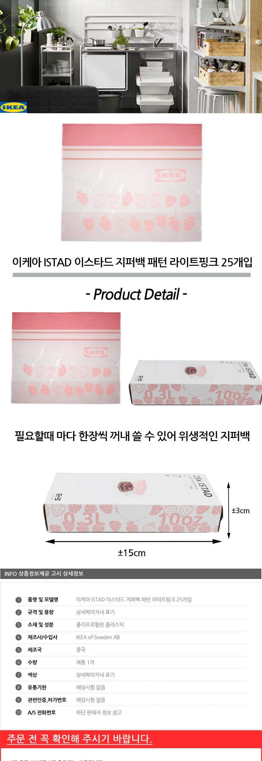 이케아 ISTAD 이스타드 지퍼백 패턴라이트핑크 25개입 위생비닐 투명비닐 일회용비닐 위생 이미지/