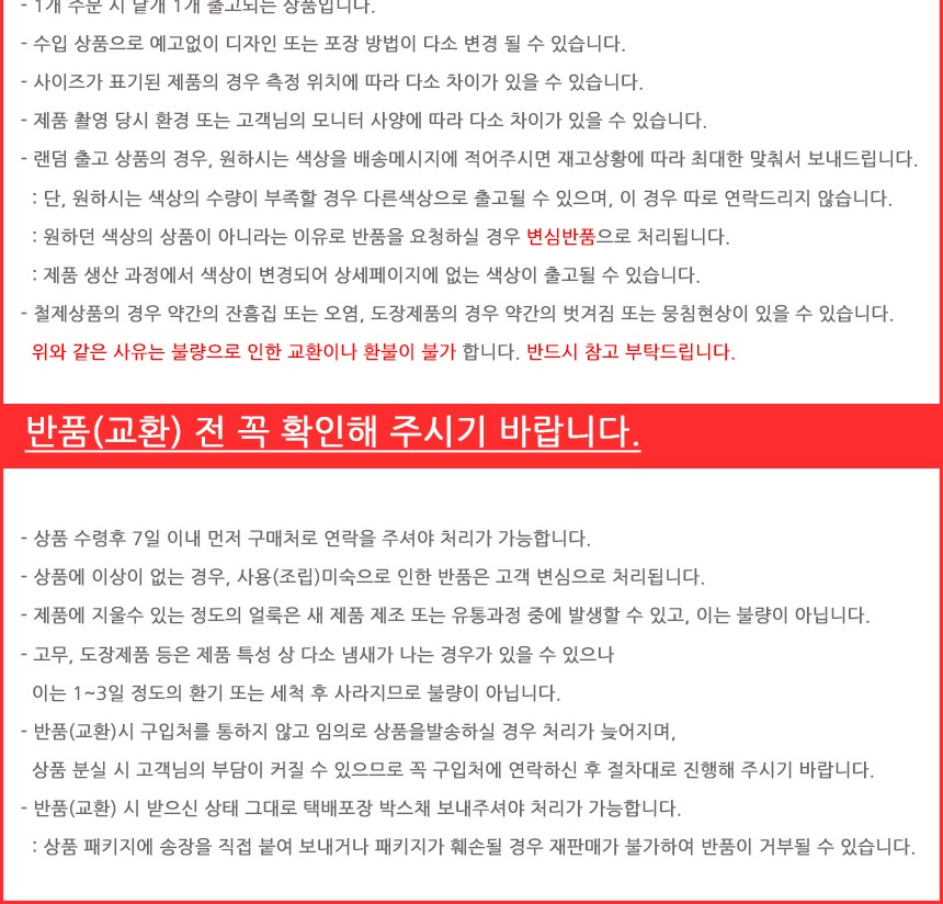 • 반품시 배송비전액+박스포장비1000원 구매자부담.통화없이 반품은 불가능합니다,