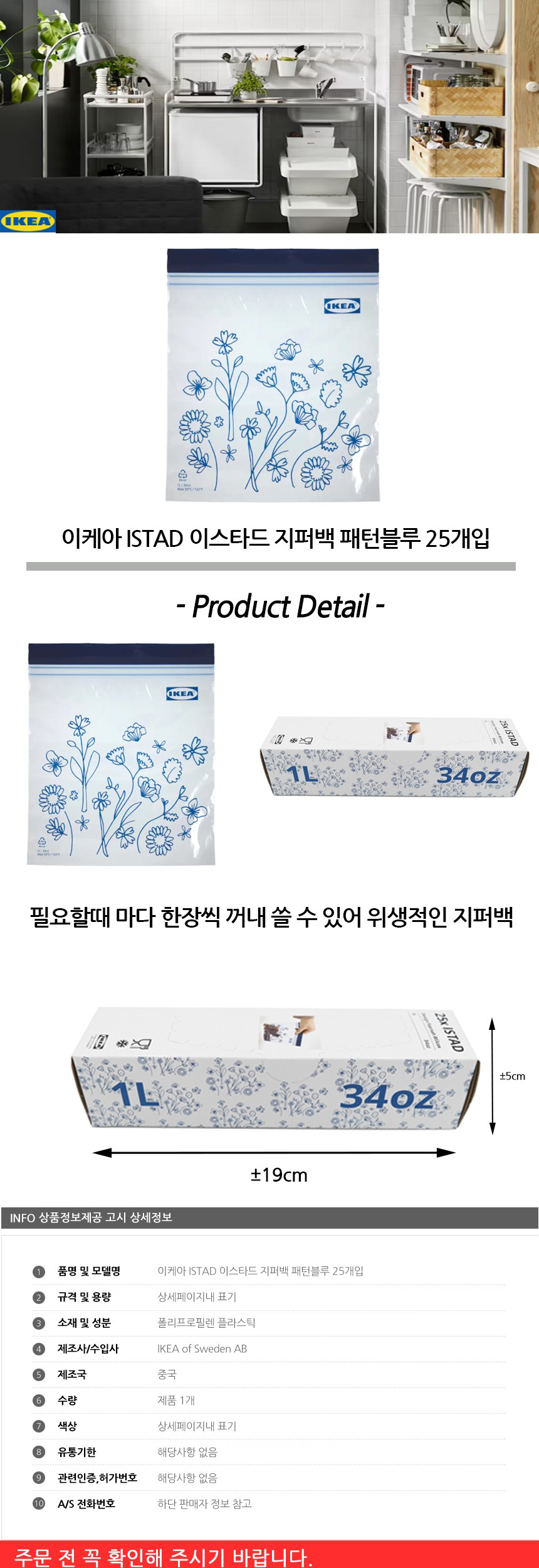 패턴블루 이스타드 투명비닐 주방비닐 이케아 위생백 위생비닐 지퍼백 25개입 일회용비닐 IS