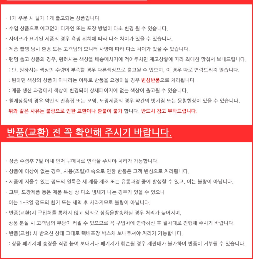 • 반품시 배송비전액+박스포장비1000원 구매자부담.통화없이 반품은 불가능합니다,