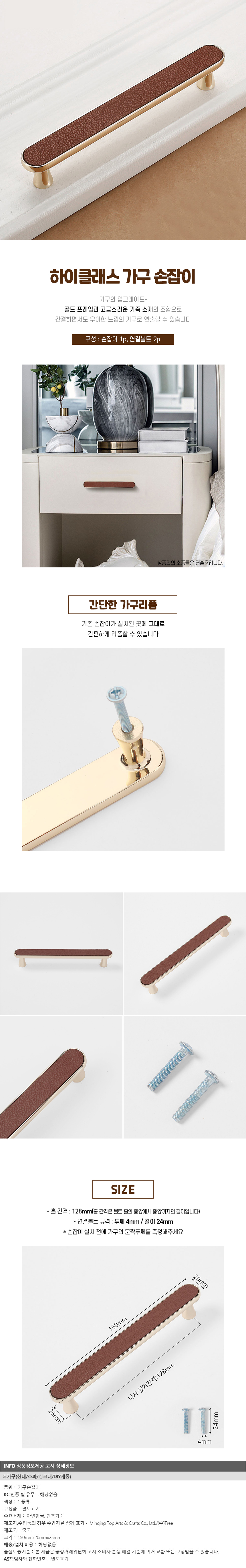 로베인 가죽 가구손잡이 2구 화장대 서랍장손잡이