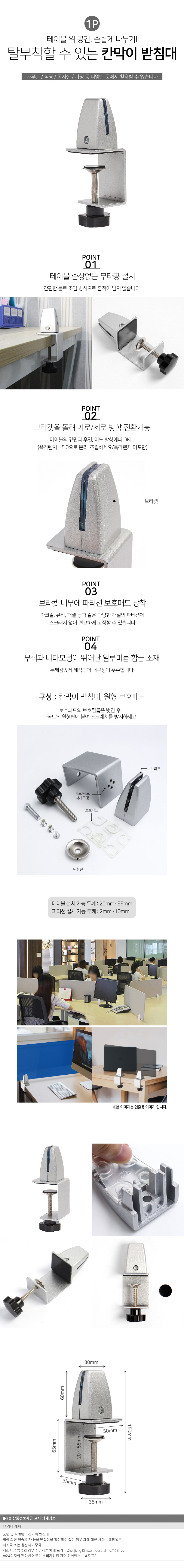 파티션 브라켓 칸막이 받침대 1p 테이블 가림막 부속
