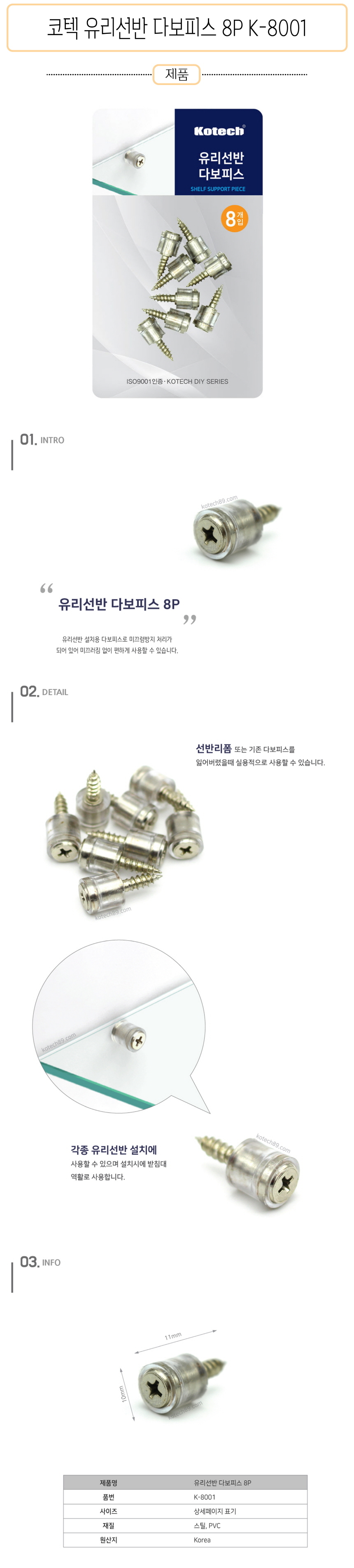 코텍 유리선반 다보피스 8P K-8001-D 이미지/