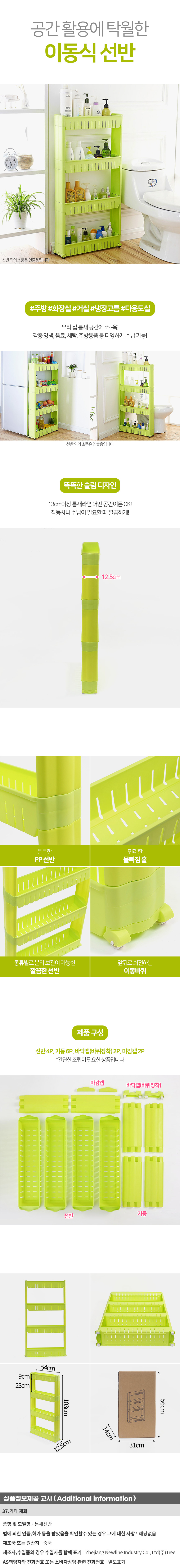 공간활용 4단 이동식 틈새선반 주방 침실 틈새트레이