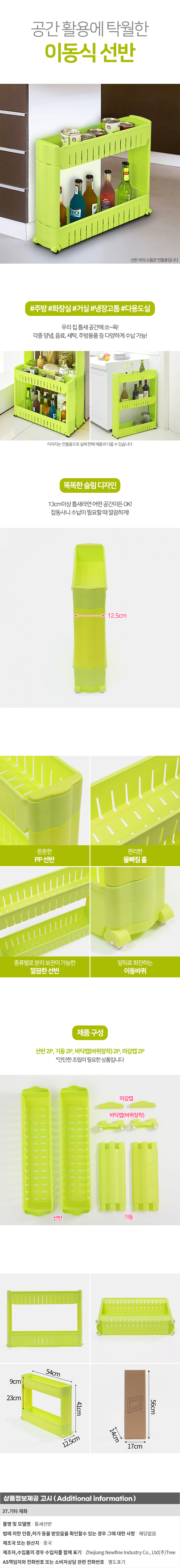 공간활용 2단 이동식 틈새선반 거실 침실 바퀴트롤리 이미지/