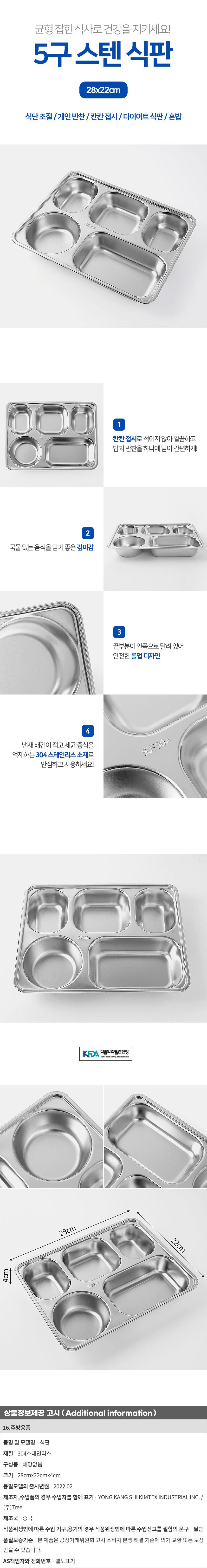 셰프맘 5구 스텐 식판 간식 나눔 다이어트 스텐그릇