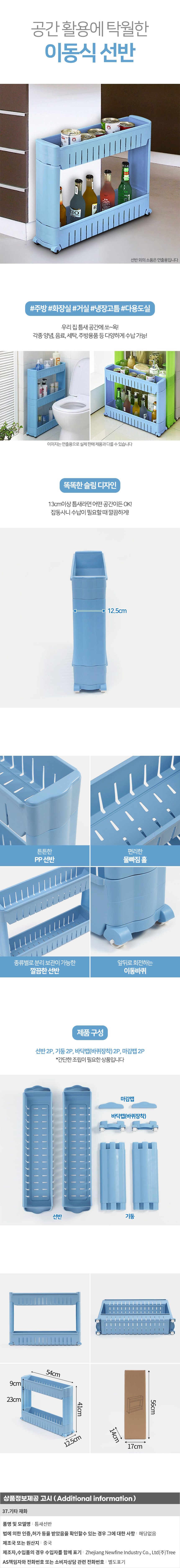 공간활용 2단 이동식 틈새선반 슬림 사이드트롤리
