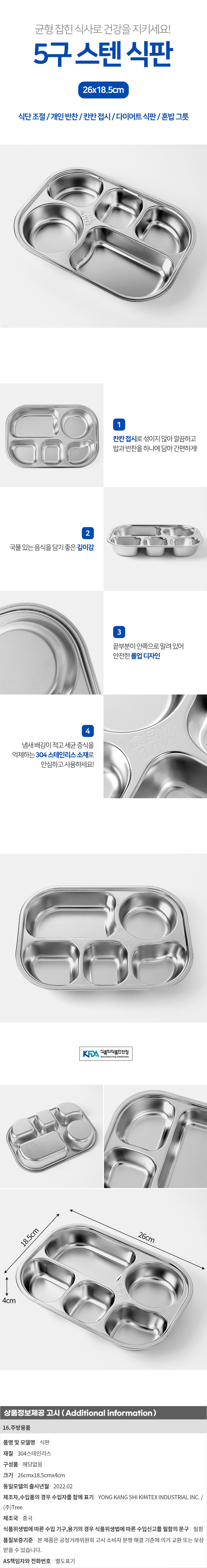 조이밀 5구 스텐 식판 나눔 간식 다이어트 캠핑그릇 이미지/