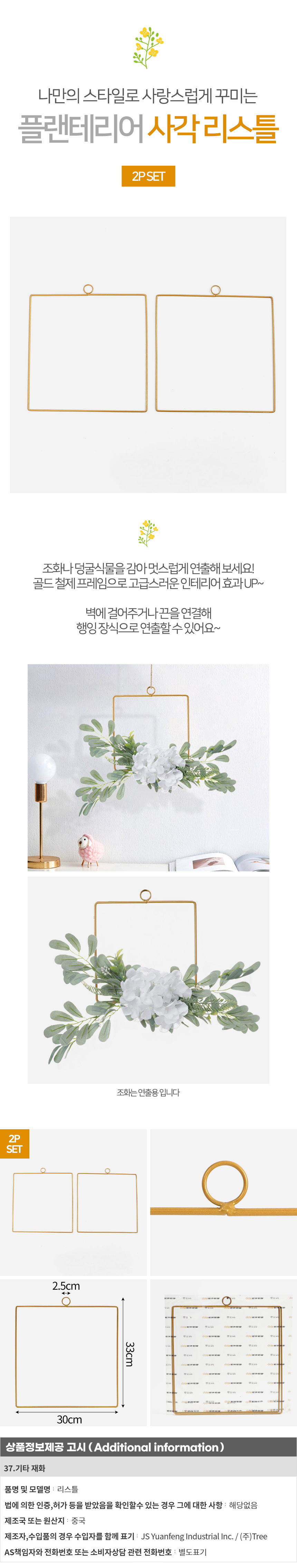 행잉 골드 사각 리스틀 2p세트 조화리스 인테리어소품
