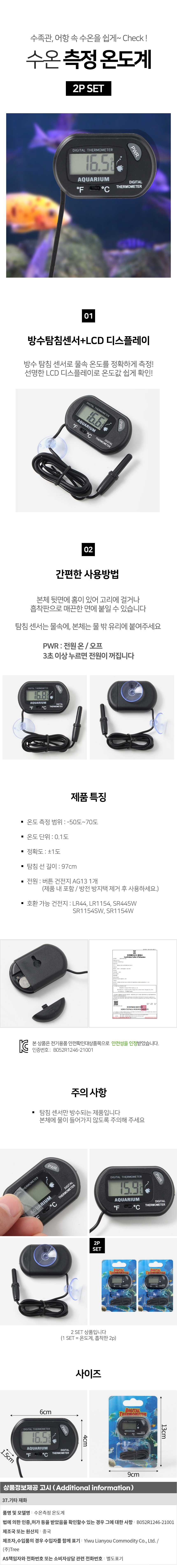 수족관 수온 측정 온도계 2p세트 어항 방수 수온계