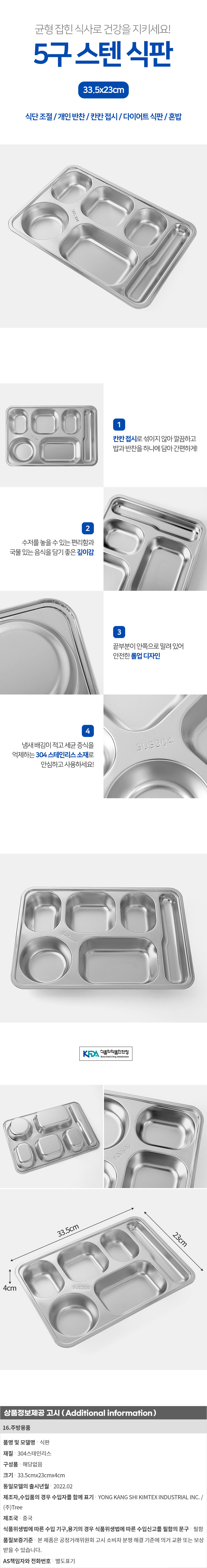 셰프맘 수저칸 5구 스텐 식판 대형 배식 캠핑식기