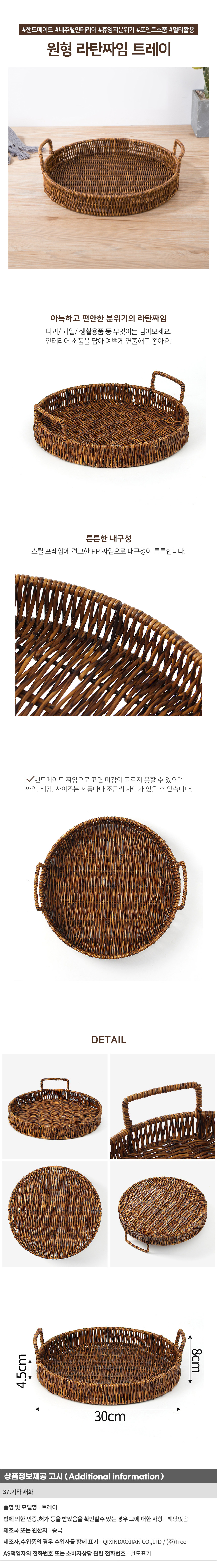베스트 원형 라탄짜임 트레이(30cm) 홈카페 쟁반 이미지/