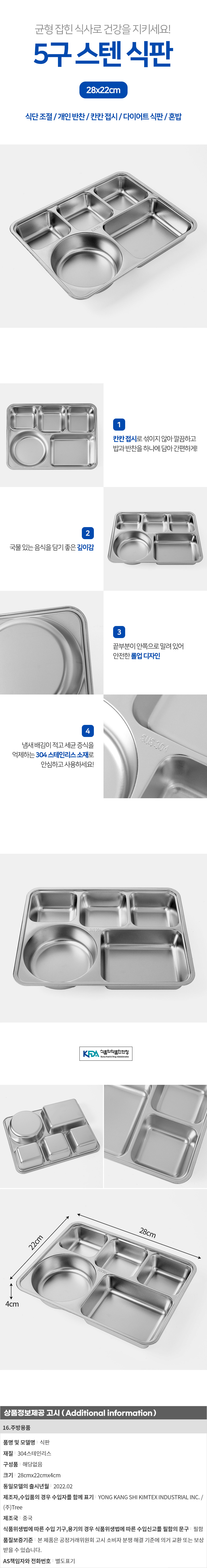 셰프맘 5구 스텐 식판 어린이식판 다이어트 식단조절