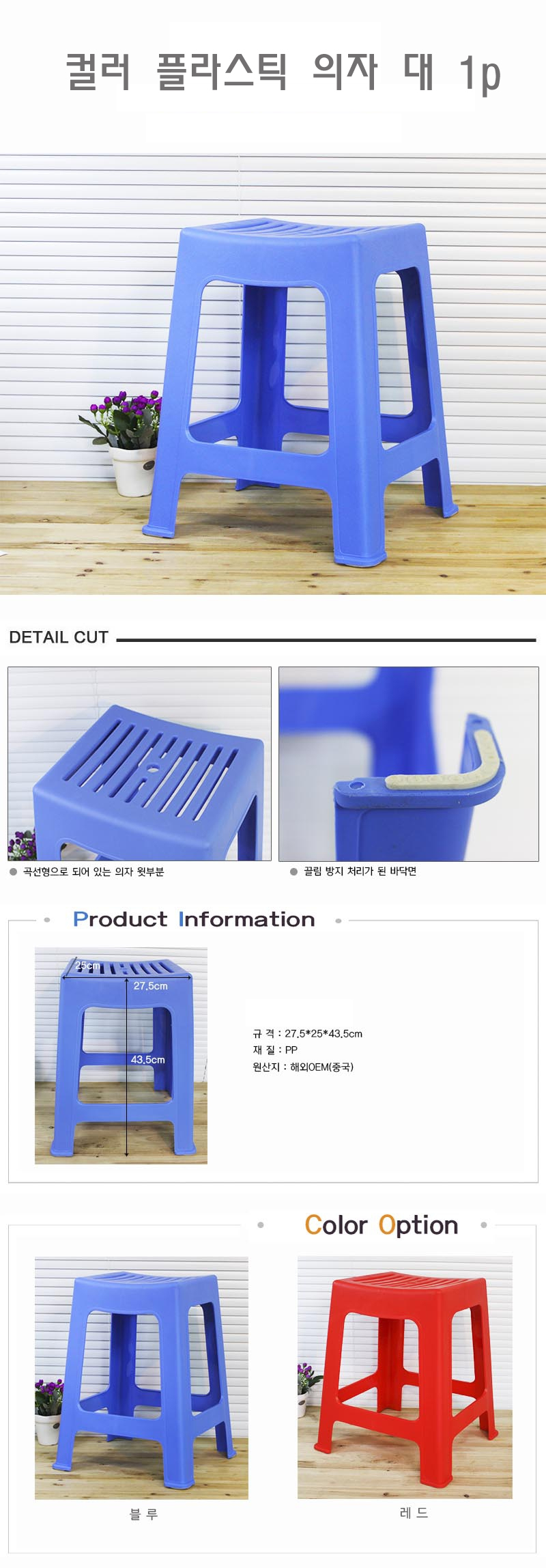 컬러 플라스틱 의자 대 1p 간이 야외용 행사용