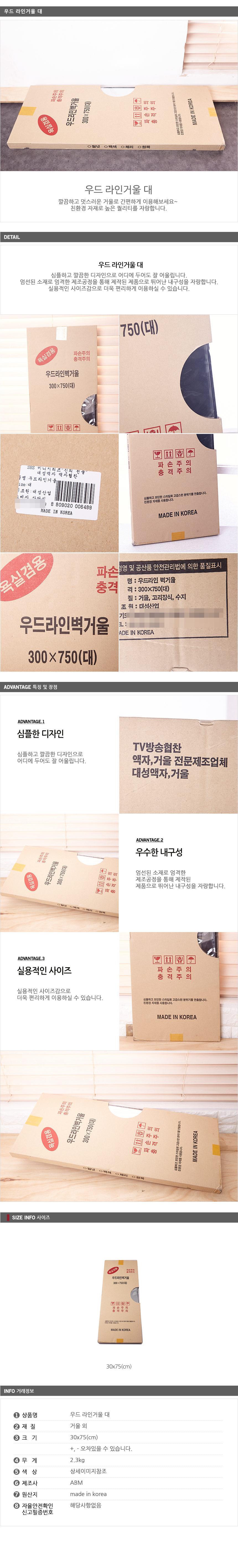 대 300-750 라인거울 우드 벽거울 인테리어거울 이미지/