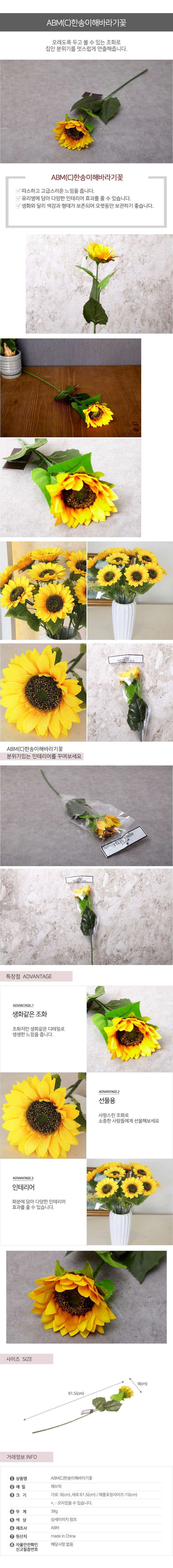 해바라기 조화꽃 고급조화 한송이 인조꽃 장식소품 이미지/