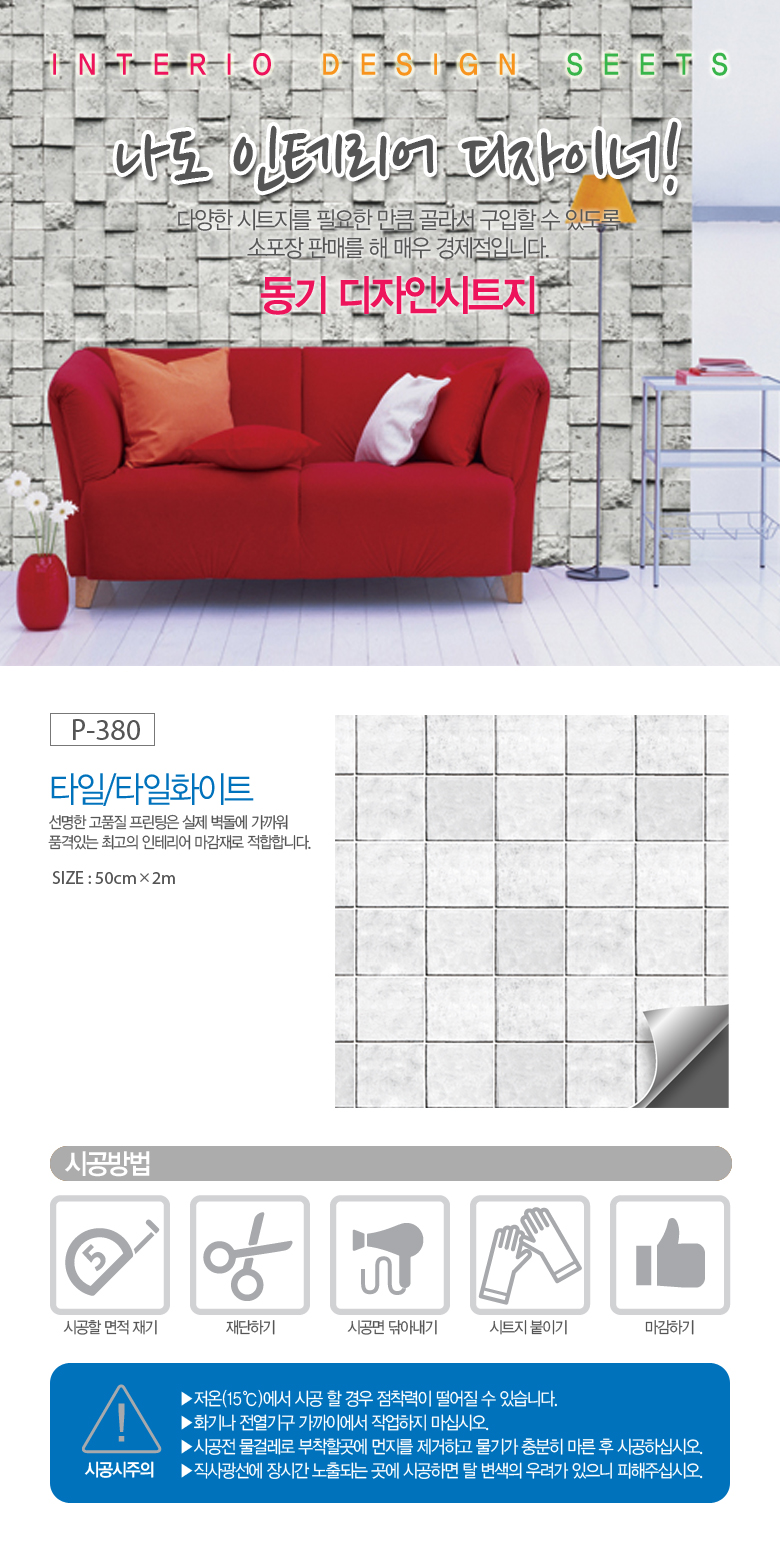 [르네상스] 소포장 타일 시트지 P-380 화이트타일 (50cmX2m)