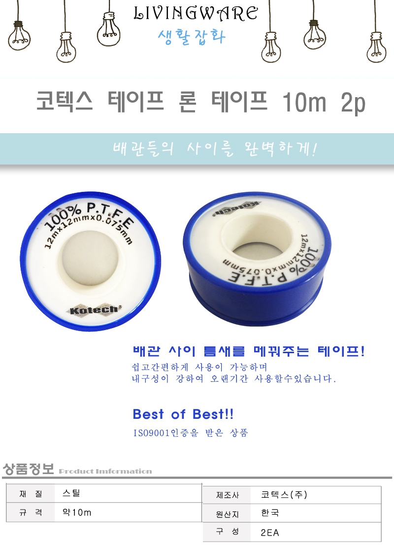 코텍스 테이프 론 테이프 10m 2p 보온테이프 배관자제