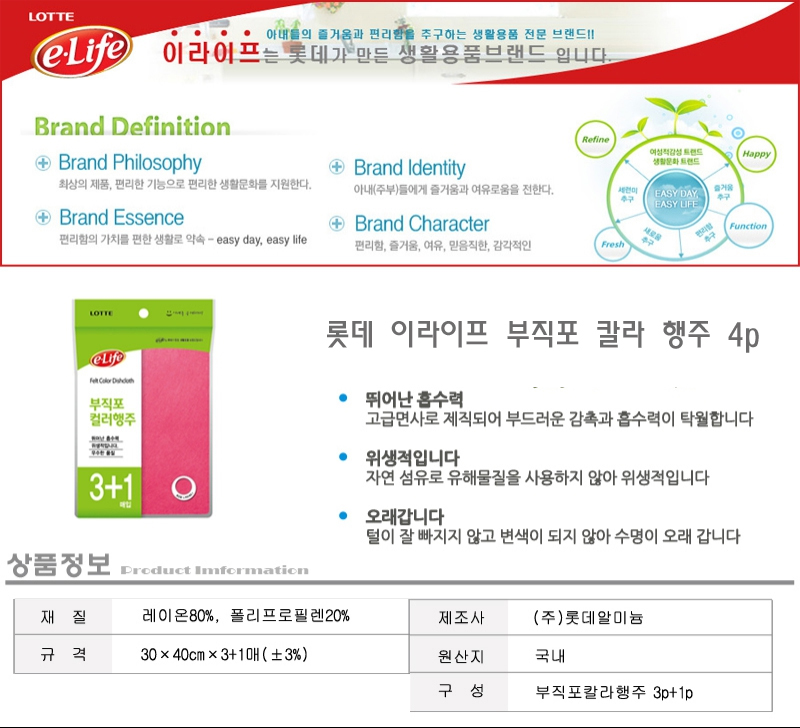 롯데 이라이프 부직포 칼라 행주 4p 면행주 고급행주