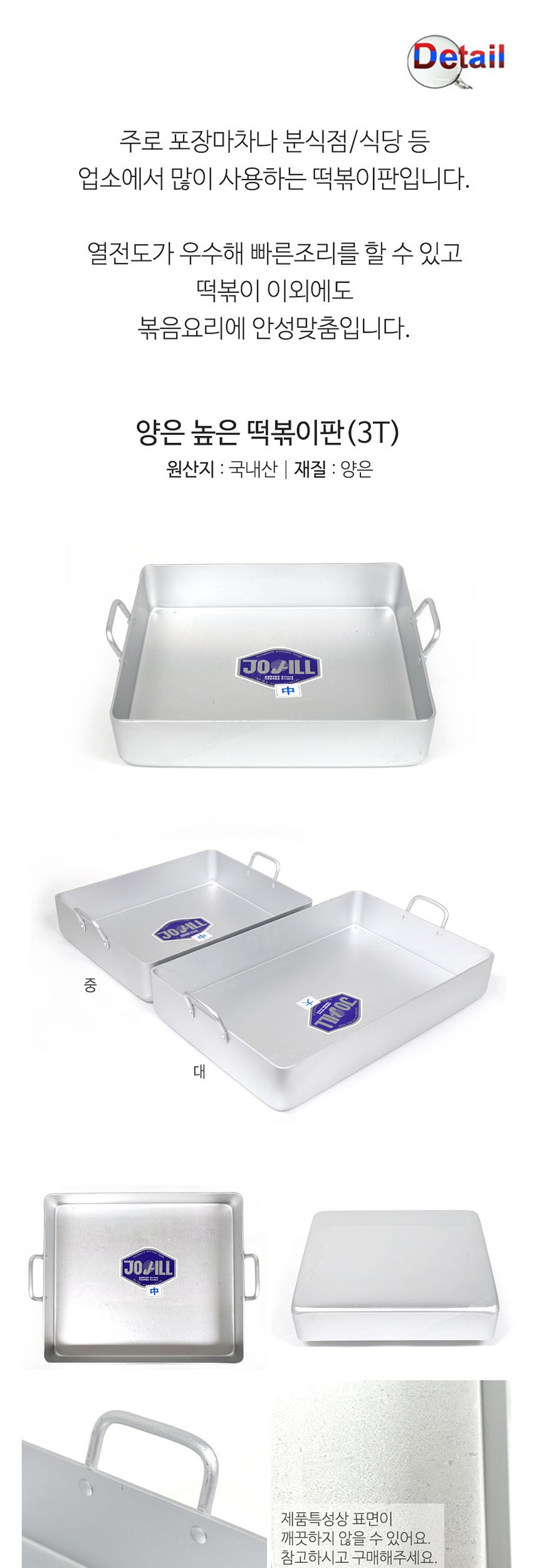 업소용 높은 떡볶이판 양은 3T 중 떡볶이판 떡볶이팬 분식점떡볶이 양은떡볶이판 철판볶음밥