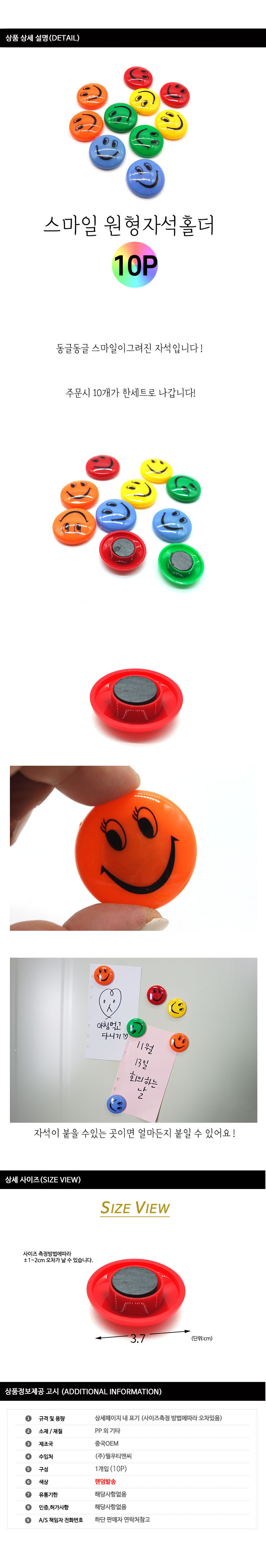 생활잡화 F 스마일 원형 자석홀더 10개입 이미지/
