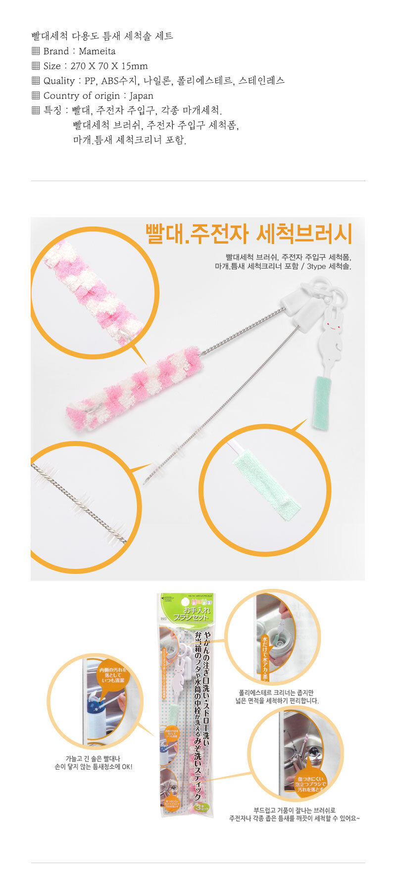 생활잡화 F 일본산 빨대 좁은틈 세척솔 3P세트 이미지/