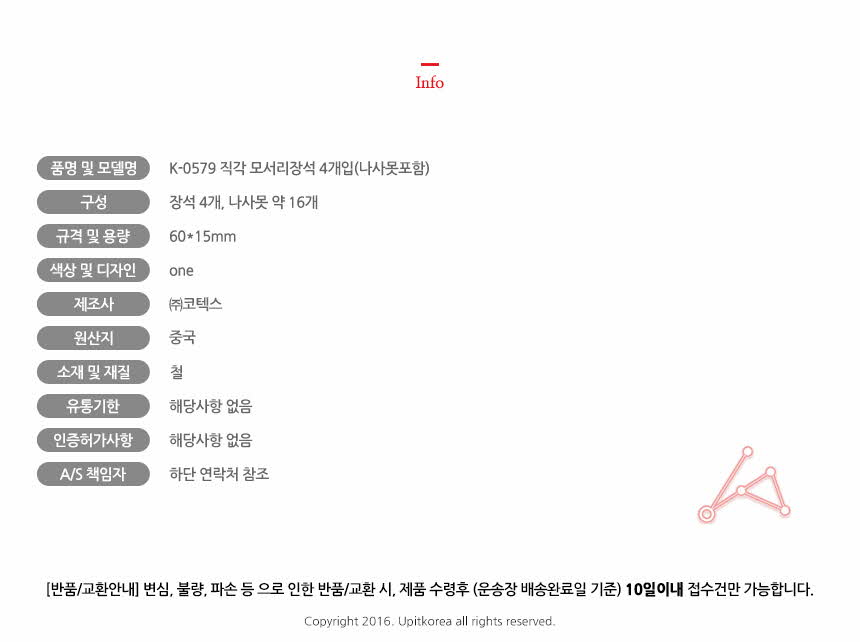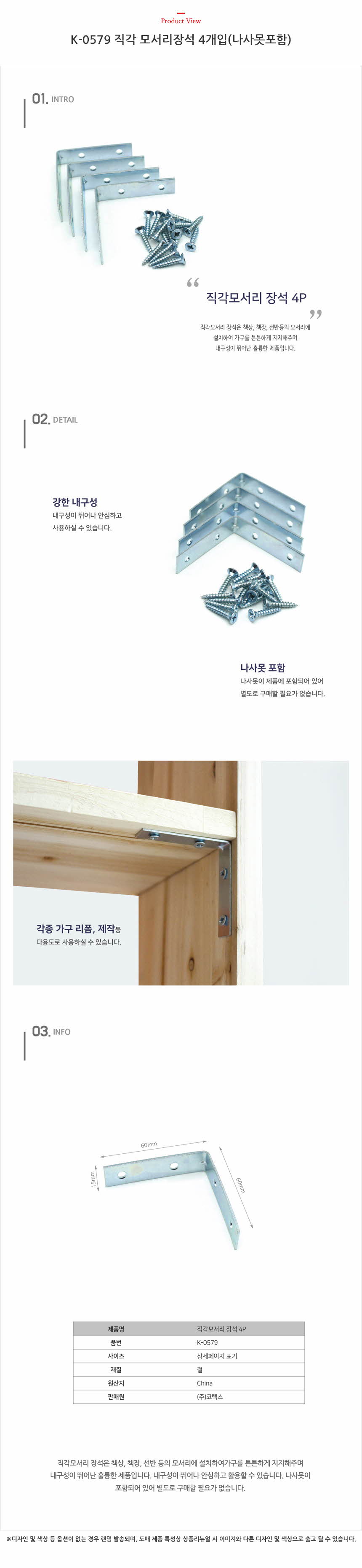 K-0579 직각 모서리장석 4개입(나사못포함) 이미지/