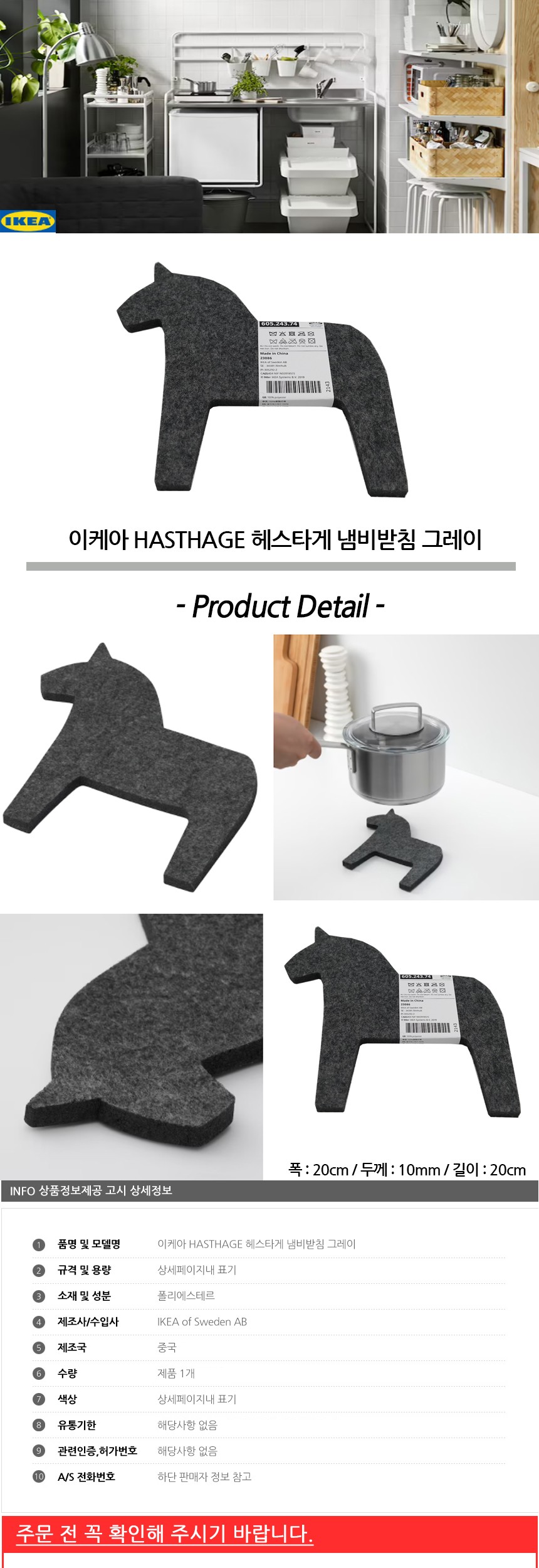 이케아 HASTHAGE 헤스타게 냄비받침 그레이 냄비받침 냄비받침대 라면받침 주방용품 주방