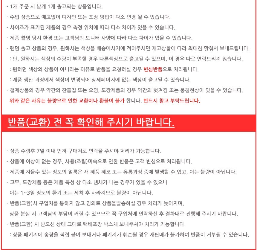 • 반품시 배송비전액+박스포장비1000원 구매자부담.통화없이 반품은 불가능합니다,
