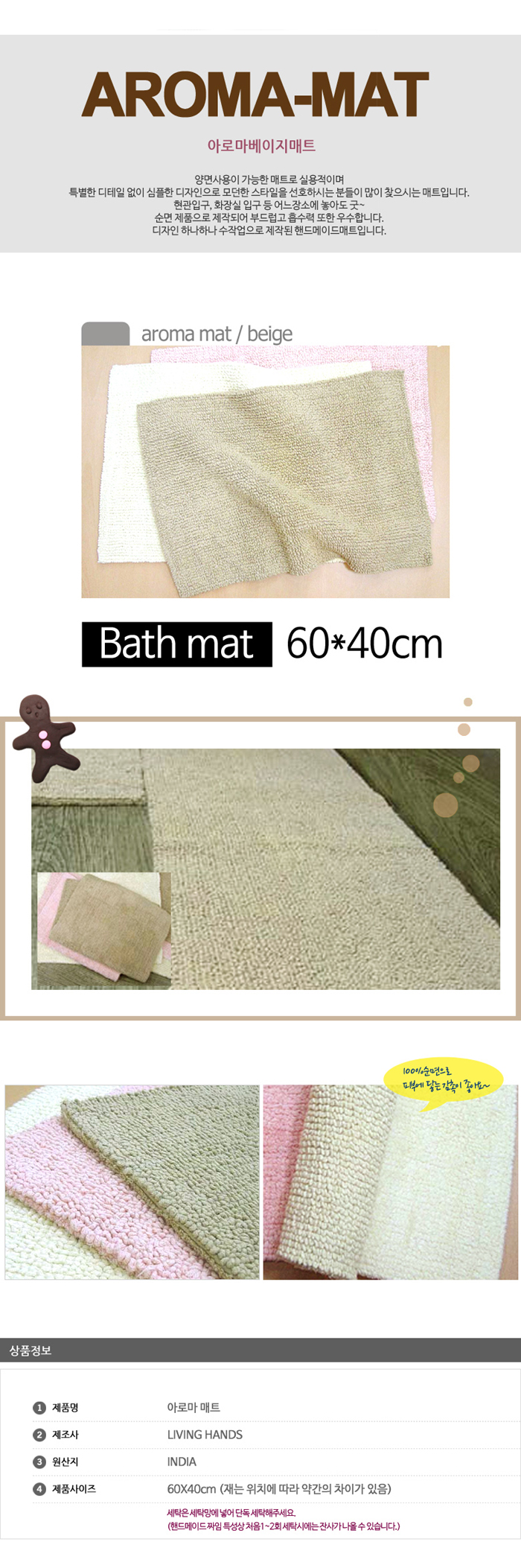 HN 아로마매트 베이지/양면매트/아로마/베이지매트60x40/발매트/현관매트/주방매트 이미지/