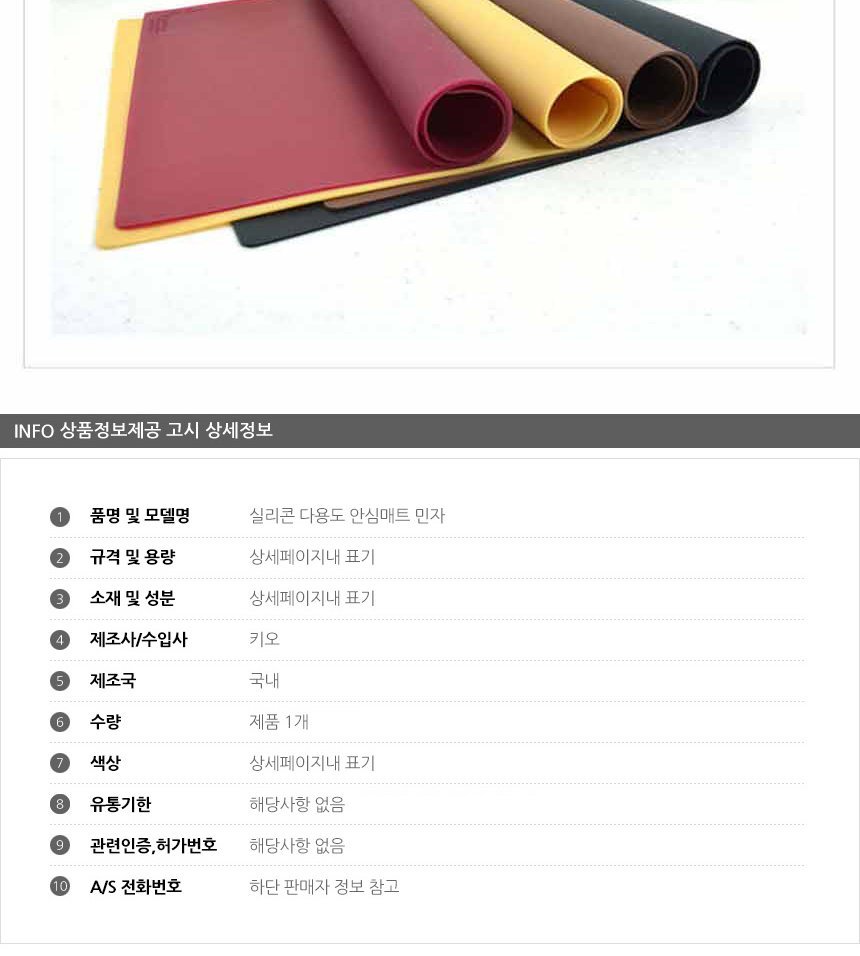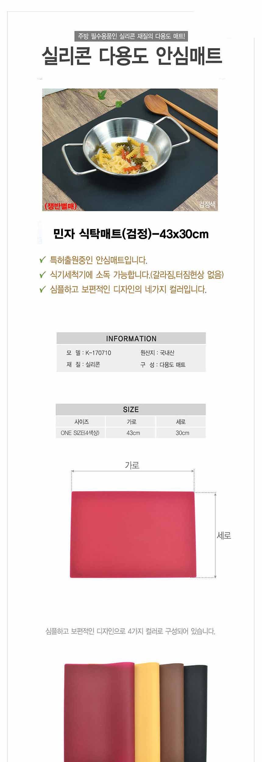 실리콘 다용도 안심매트 민자 검정색 이미지/