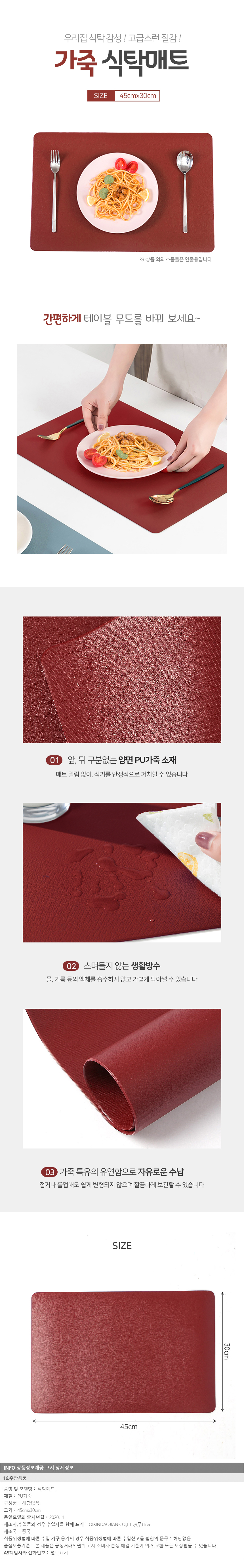 더테이블 가죽 식탁매트(레드) 이미지/