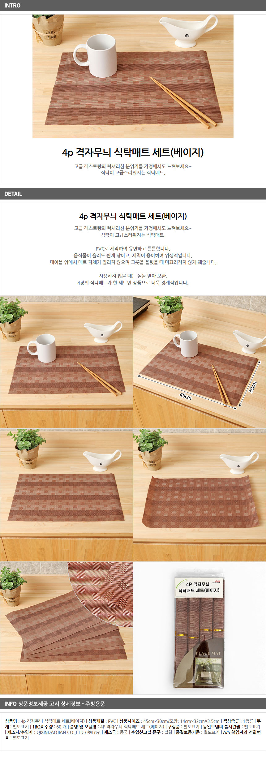 4p 격자무늬 식탁매트 세트(베이지)