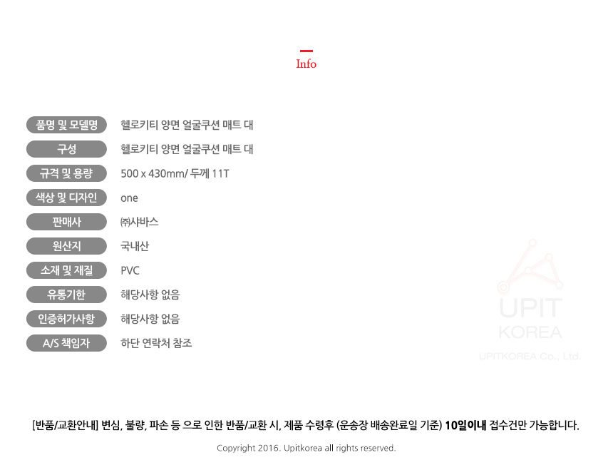 헬로키티 양면 얼굴쿠션 매트 대 이미지/