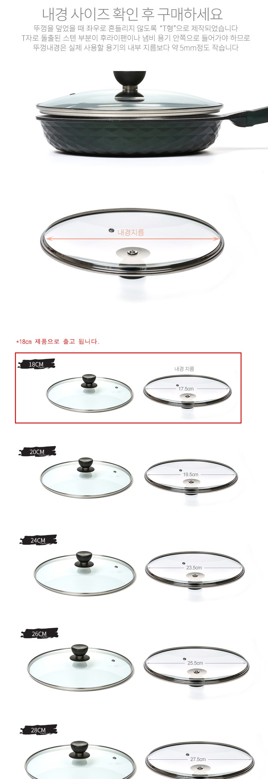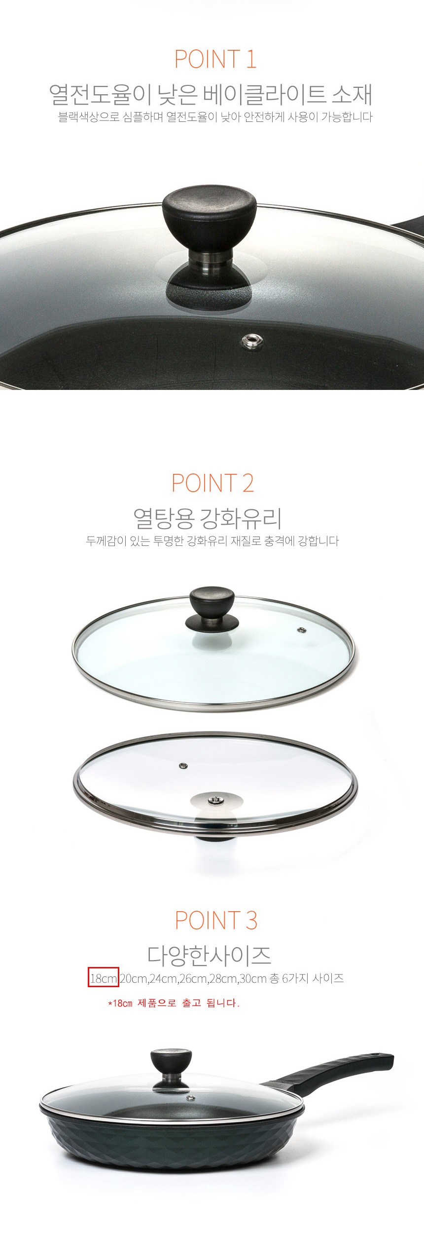 블랙손잡이 강화 유리뚜껑 18cm 이미지/