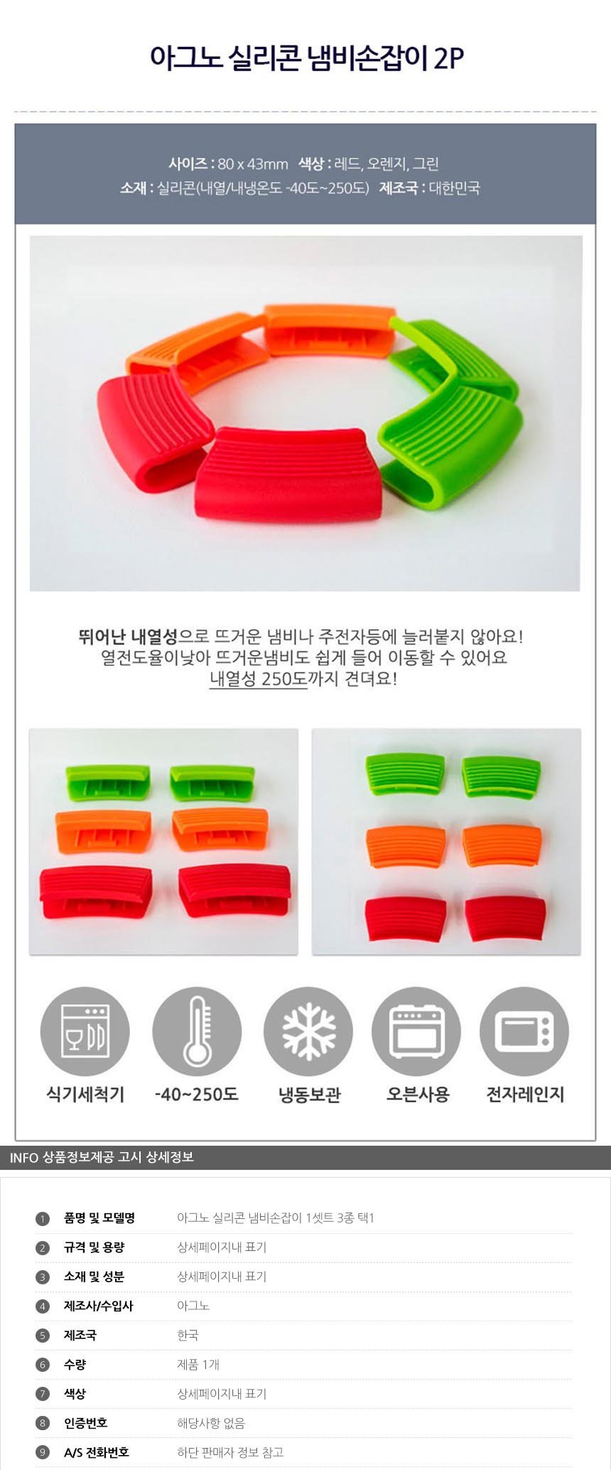 아그노 실리콘 냄비손잡이 1셋트 3종 선택1 이미지/