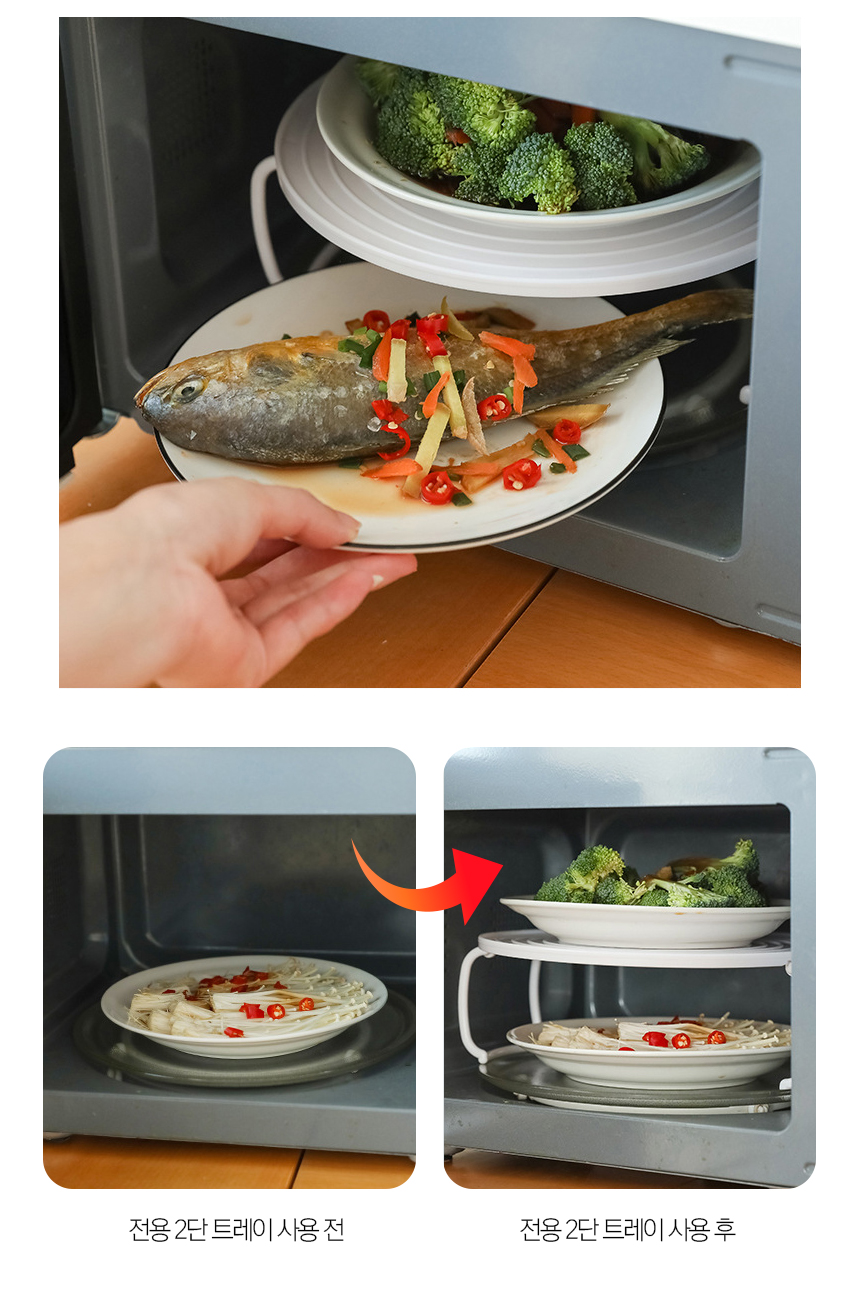 장갑이 필요없는 전자레인지 오븐 용기받침대 2단 회전판