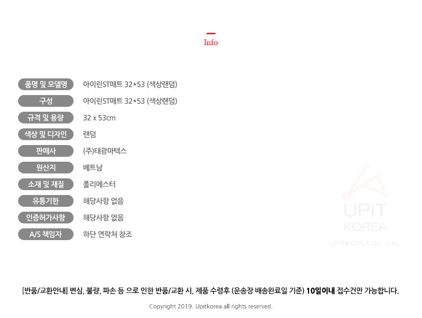 아이린ST매트 32x53 (색상랜덤) 7693 이미지/