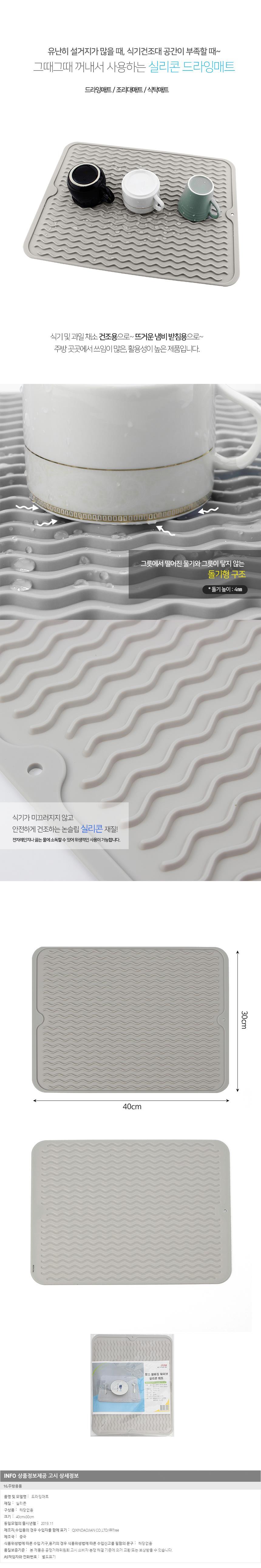 웨이브 40cm 드라잉매트 라이트그레이 실리콘