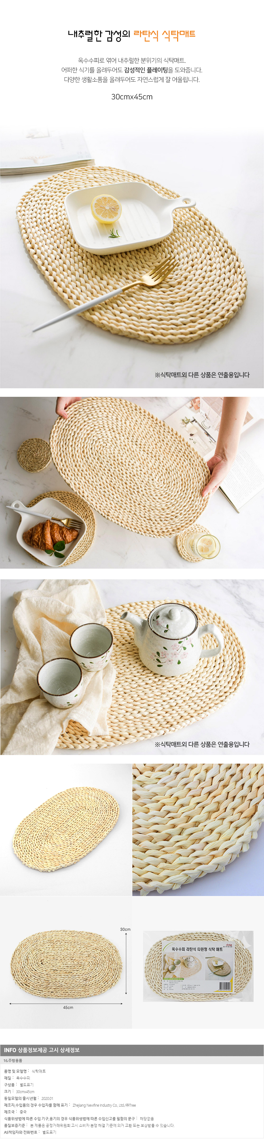 플레이팅 라탄식 식탁매트(45x30cm) 이미지/