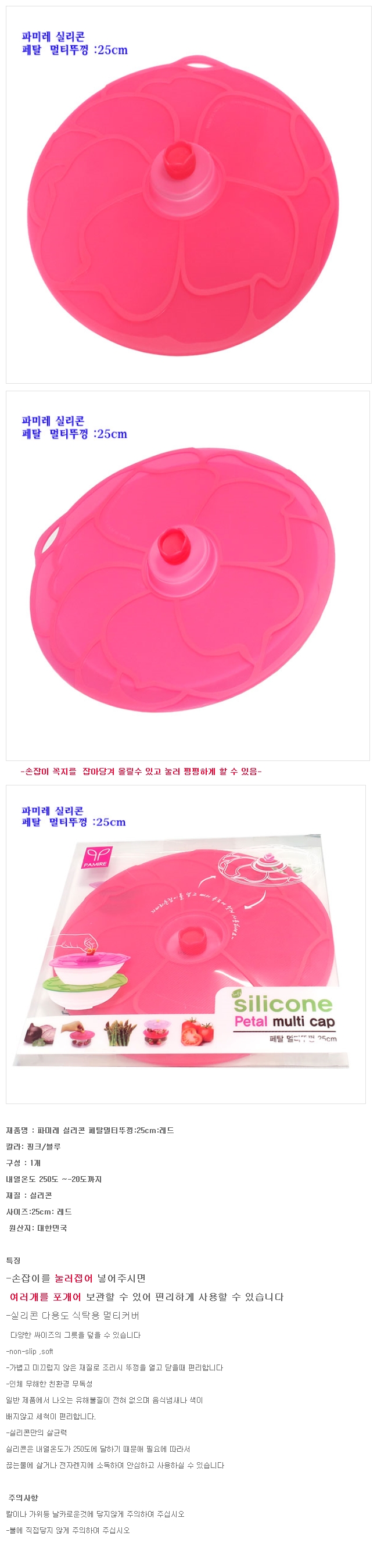 파미레 냄비 뚜껑 실리콘랩 덮개 푸드 커버 레드 22cm 이미지/